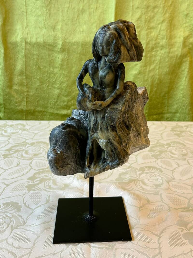 Rebecca devant son puits, stéatite 2023, h 21 cm